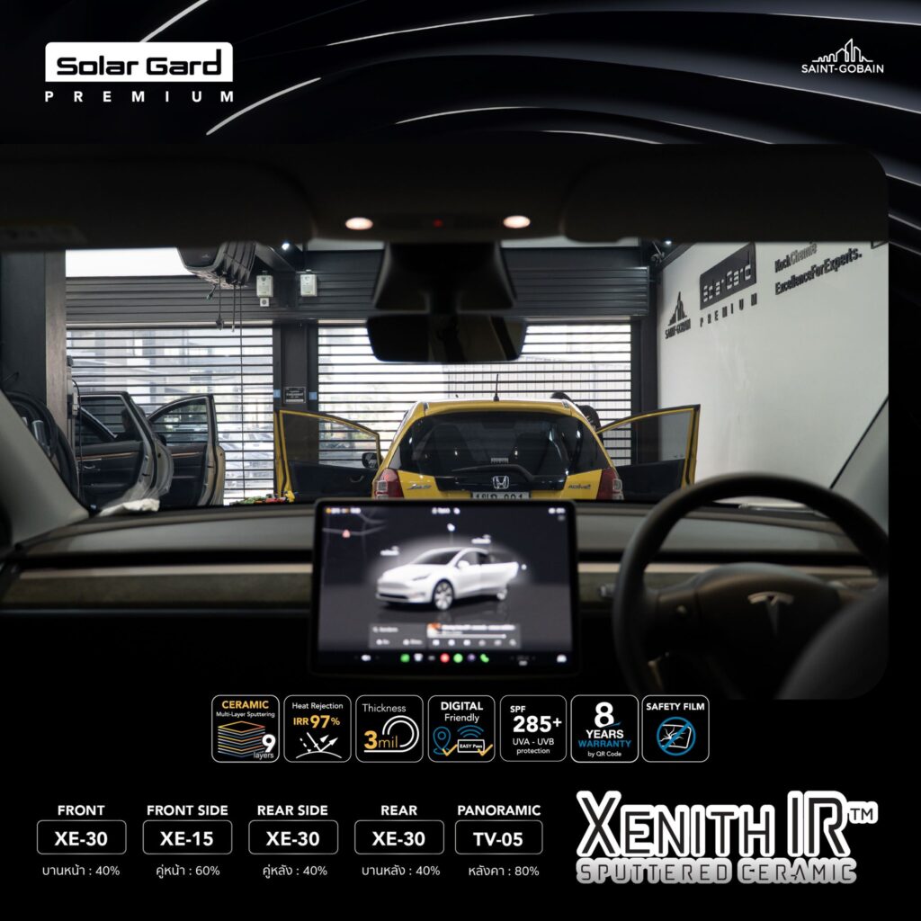 ฟิล์มกรองแสงรถยนต์ รุ่น Xenith IR เป็นฟิล์มกรองแสงเซรามิค หนา 3 Mill ที่ใช้เทคโนโลยีการเคลือบฟิล์ม ซ้อนกันถึง 9 ชั้น โดยจะมีจุดเด่นเรื่องการป้องกันรังสีความร้อนสูง 95% ค่าลดความร้อนรวมสูงสุด 65% เป็นที่นิยมสำหรับรถไฟฟ้า EV